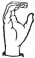 На ћирилици написано САВА КОШУТАРАЦ састоји се из 13 слова [?]. Исписано ћириличном једноручном азбуком за глувонеме: